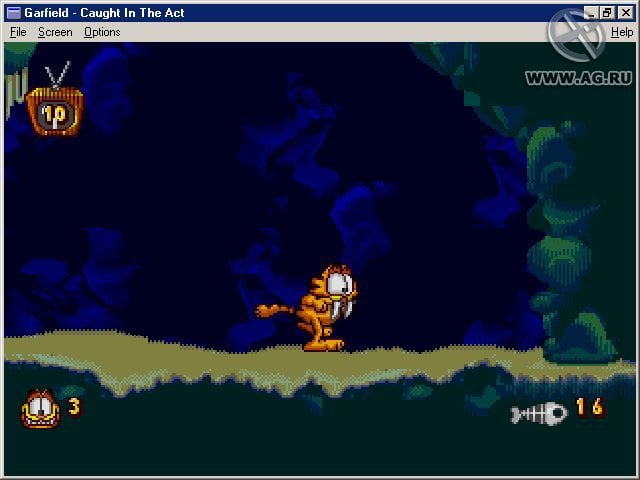 Геймплей первых раундов простой: нужно прыгать, лазить по объектам и раскачиваться, чтобы перепрыгнуть дальше. В неприятеля придется бросать найденные предметы и уклоняться от атак. По мере прохождения игровой процесс усложниться: появятся лабиринты и несколько выходов, а персонаж должен выбрать подходящий. Иногда дорогу будет блокировать босс, которого необходимо прикончить, чтобы пройти дальше. В качестве врагов выступают призраки, пираньи, крабы, бульдоги, мумифицированные мыши и другие существа. Присутствуют бонусные уровни, где бои разделены рекламной паузой, на протяжении которой герой летит по Телевизионной Пустоши и пытается получить еще одну жизнь. Дополнительных приемов или шмота у Гарфилда нет: атакует он кулаками, а в качестве снаряда использует камни.